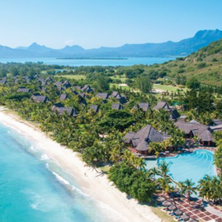 A classic Mauritian resort nestled between lagoon and mountain, offering a championship golf course, water sports, and vibrant resort life.